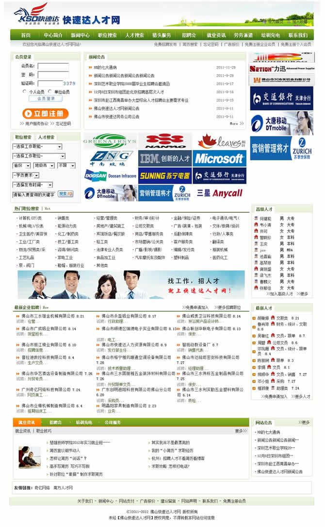 佛山快速達人才網(wǎng)是佛山市快速達人力資源有限公司旗下的一個面向全國的佛山人才招聘網(wǎng)站。該網(wǎng)站由在大型企業(yè)從事人事招聘服務將近11年的HR所創(chuàng)辦,是經(jīng)市勞動局、人事廳批準,工商局注冊并領(lǐng)取營業(yè)執(zhí)照的合法企業(yè),是具有獨立法人資格的勞務服務組織;是一家專業(yè)從事大、中專職校畢業(yè)生、實習生就業(yè)安置的專業(yè)機構(gòu);公司除勞務派遣及輸送業(yè)務外,還從事職業(yè)介紹、信息發(fā)布、舉辦洽談招聘會、家居清潔、獵頭服務、勞務培訓、企業(yè)管理咨詢、人事管理咨詢、就業(yè)信息咨詢、人才信息咨詢等相關(guān)配套服務。