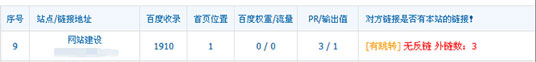 2、權(quán)衡網(wǎng)站的權(quán)重。尋找友鏈最好是自己主動(dòng)去發(fā)現(xiàn),方法可以通過自己網(wǎng)站的關(guān)鍵詞來搜索,一般能夠排在前面的網(wǎng)站權(quán)重是相對(duì)較高的,如果發(fā)現(xiàn)目標(biāo)網(wǎng)站權(quán)重比自己網(wǎng)站要高得多,還可考察目標(biāo)網(wǎng)站上的友鏈站點(diǎn)來選擇,總之,選擇友鏈的最低標(biāo)準(zhǔn)都要是與自身權(quán)重相當(dāng)?shù)木W(wǎng)站。考察一個(gè)網(wǎng)站除了看它的權(quán)重以外,網(wǎng)站的收錄,索引,排名趨勢(shì),鏈接數(shù)量等都是參考因素。例如:一個(gè)網(wǎng)站的大致情況如下,所要找的網(wǎng)站友鏈數(shù)則最好不超過30個(gè),權(quán)重相當(dāng)?shù)那疤嵯戮鸵词珍浟渴欠褚彩?000左右,其次是看它主關(guān)鍵詞的排名是否靠前,網(wǎng)站內(nèi)容更新頻率以及大體趨勢(shì)是否朝好的方向變化。對(duì)于新站來說也可將其作為一個(gè)判斷依據(jù),千萬不可好高騖遠(yuǎn),要想找到權(quán)重更高的網(wǎng)站來做友鏈,唯一一個(gè)方法就是努力提高自身網(wǎng)站權(quán)重。